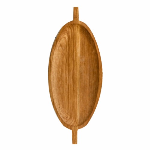Поднос служит большим сервировочным блюдом или крупным предметом-акцентом в декоре стола. Его можно использовать как полку или столешницу, а несколько подносов, поставленных друг на друга, составляют журнальный столик или тумбу. Сделан вручную. Покрытие: льняное масло. При необходимости можно обновлять покрытие, протерев поверхность тряпочкой, смоченной льняным маслом. После влажной обработки его нужно протирать полотенцем. Из-за специфики ручного труда все предметы отличаются друг от друга.