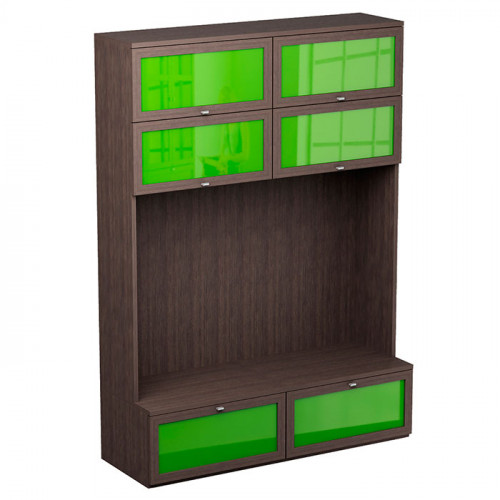 Шкаф с нишей для телевизора и 8 отделениями за откидными дверцами.